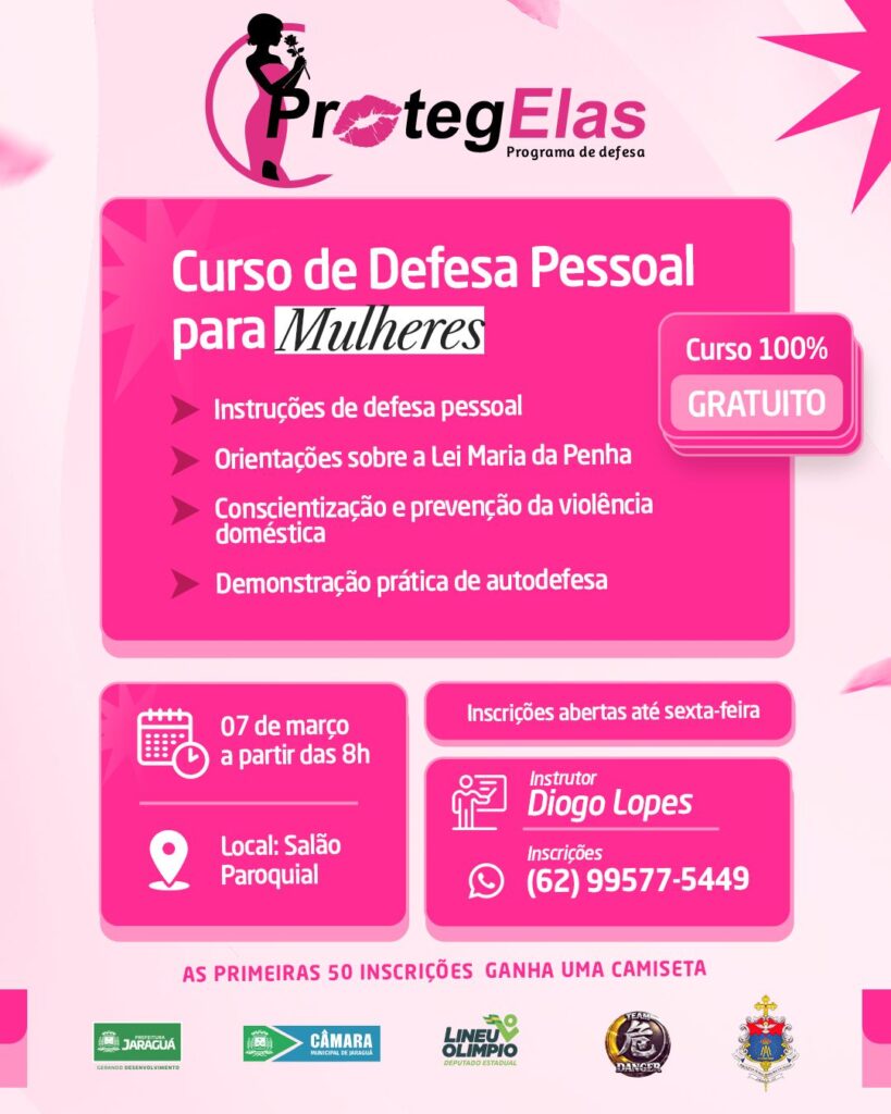 Com objetivo de dar maior proteção ás mulheres, além daquelas oferecidas pelas forças de segurança pública do estado, a Prefeitura de Jaraguá e empresas parceiras oferece o curso gratuito de defesa pessoal para as mulheres.