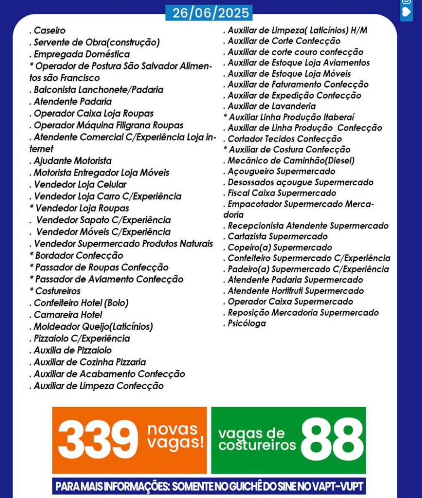 Com salários que variam de R$ 1.580 até R$ 3.200, os valores não são atrativos para que as vagas sejam preenchidas. Somente no setor de confecções há 88 vagas para costureiros e para passador.